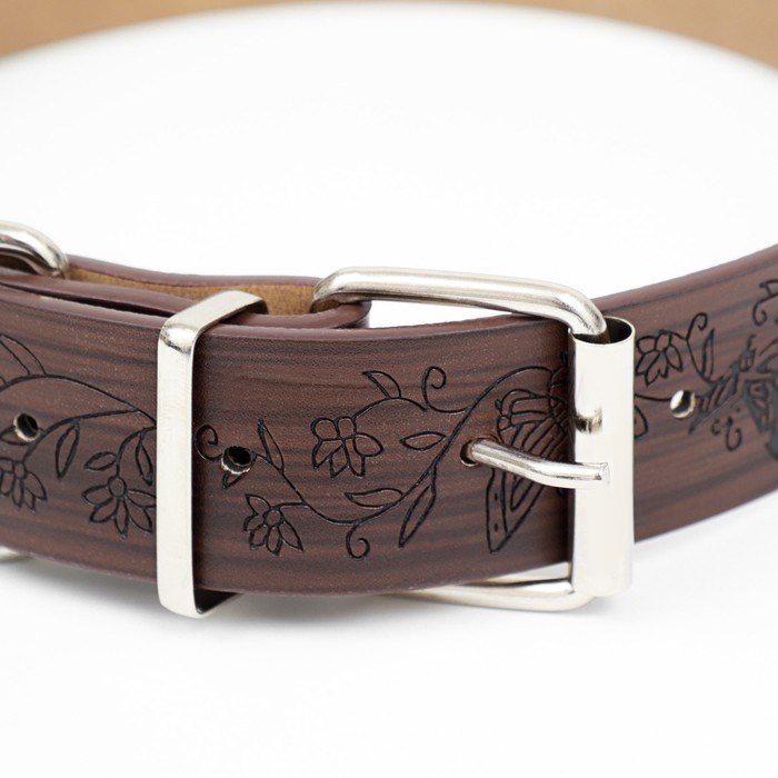 Ошейник с подкладом из прессованной кожи, 59 х 3 см, ОШ 41-51 см, коричневый