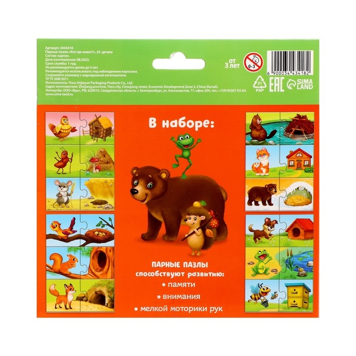 Парные пазлы «Кто где живёт?», 24 детали