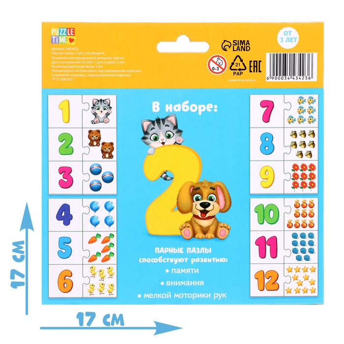 Парные пазлы «Счёт», 12 пазлов, 24 детали