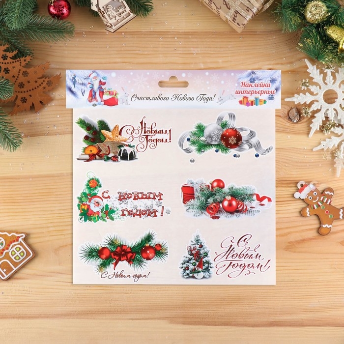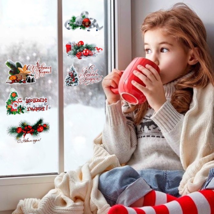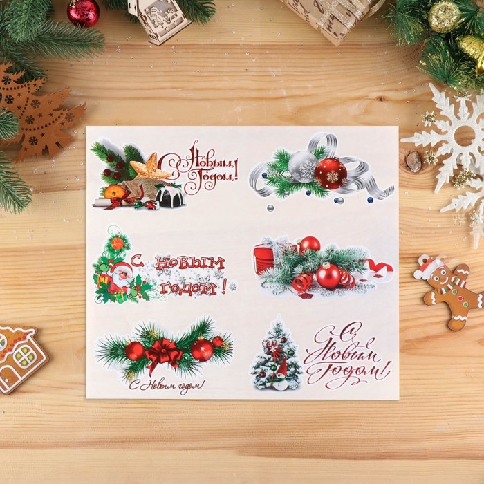 Набор наклеек на окна "Новогодний" 6 наклеек новогодних в наборе, 10 х 17,5 см