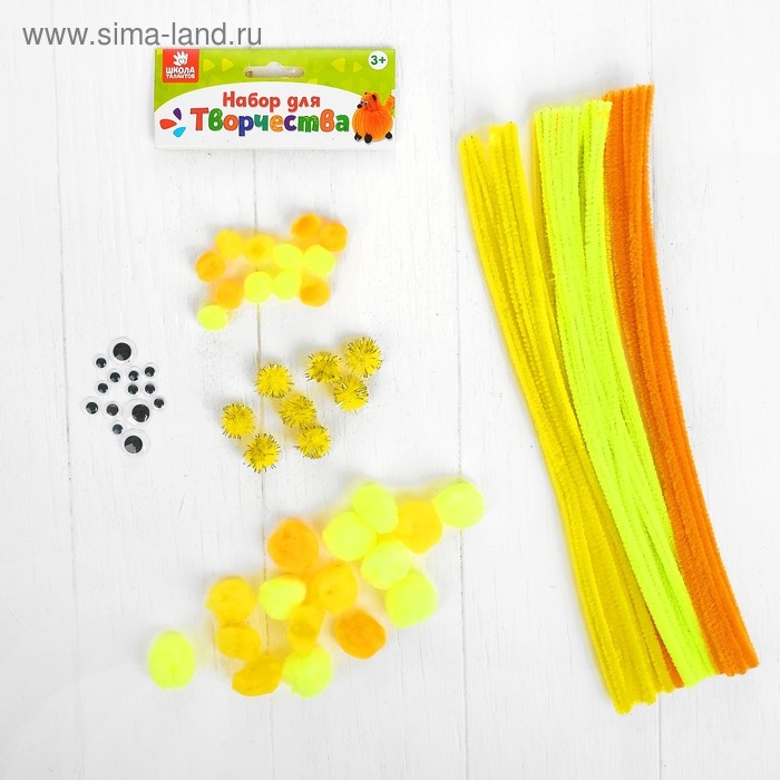Набор для творчества поможет ребёнку создать пушистую поделку в виде причудливого зверька. Малышу остаётся только придумать, какое животное он будет делать.