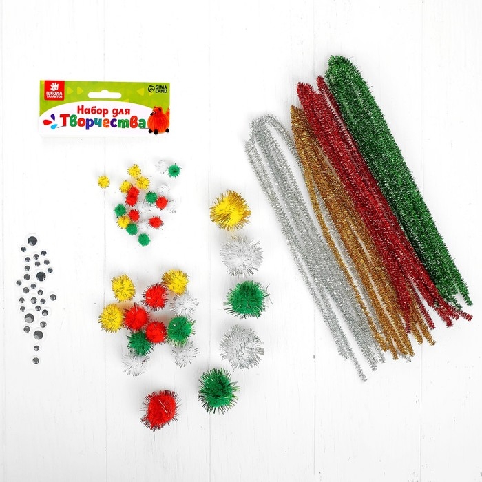 Набор для творчества из проволоки с ворсом, помпонов, глаз №14, цвет МИКС