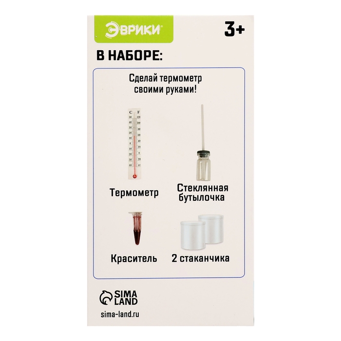 С набором «Эврики» ребёнок проведёт увлекательные опыты по химии, узнает, как работает термометр, и самостоятельно изготовит собственный прибор для измерения температуры.