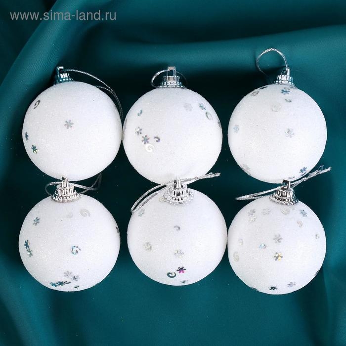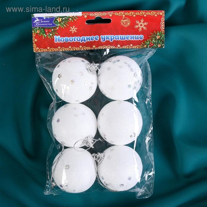 Набор шаров пластик d-4,5 см, 6 шт "Снежная сказка" белый