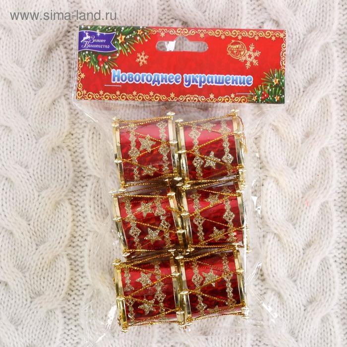 Украшение ёлочное "Барабан" звезда (набор 6 шт) 3,5х3,5 см, красный