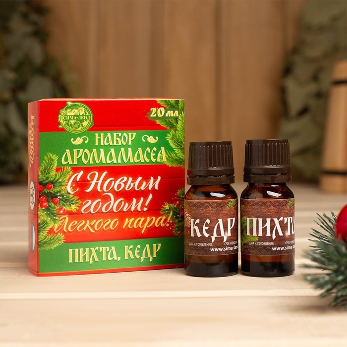 Набор эфирных масел 2 шт по 10 мл "С новым годом! С легким паром!" пихта, кедр