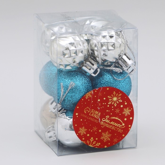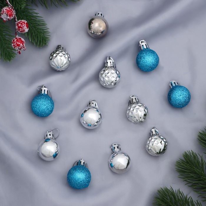 Набор шаров пластик d-2,5 см, 12 шт "Альянс" серебро, синий