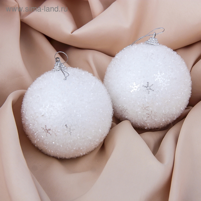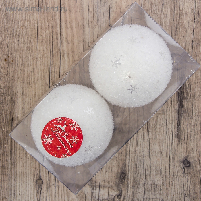 Набор шаров пластик d-9 см, 2 шт "Снежный блеск" белый