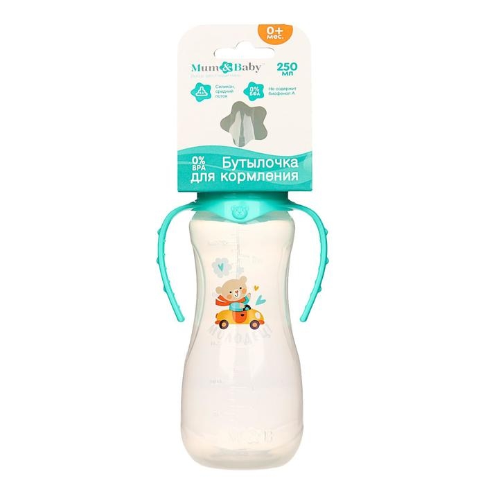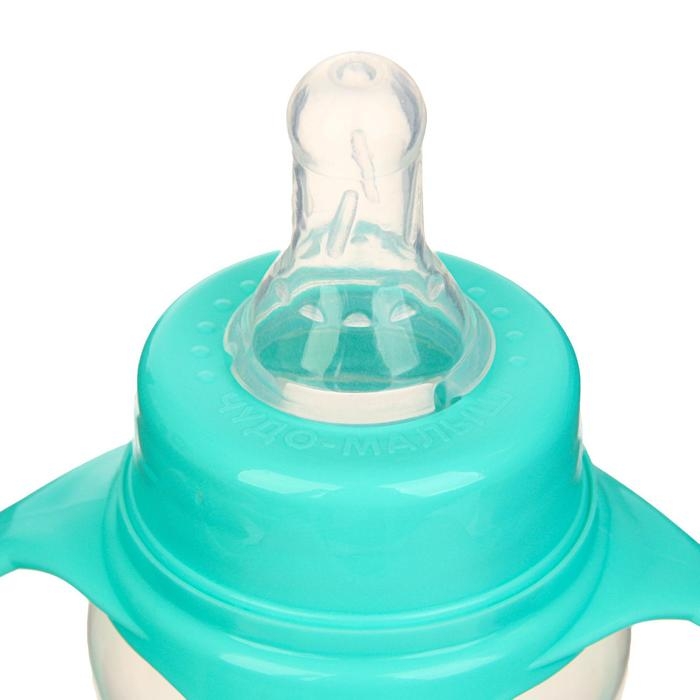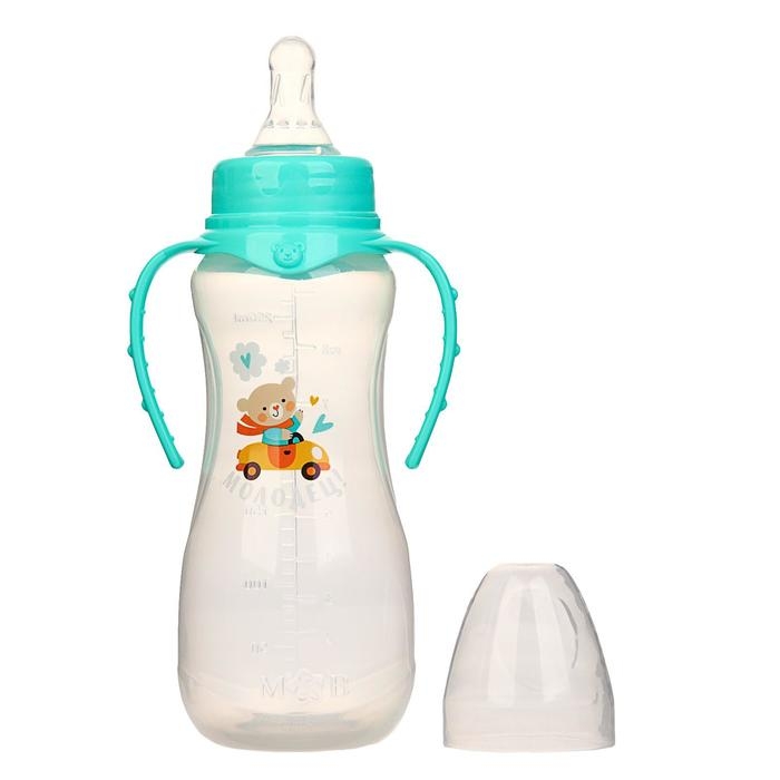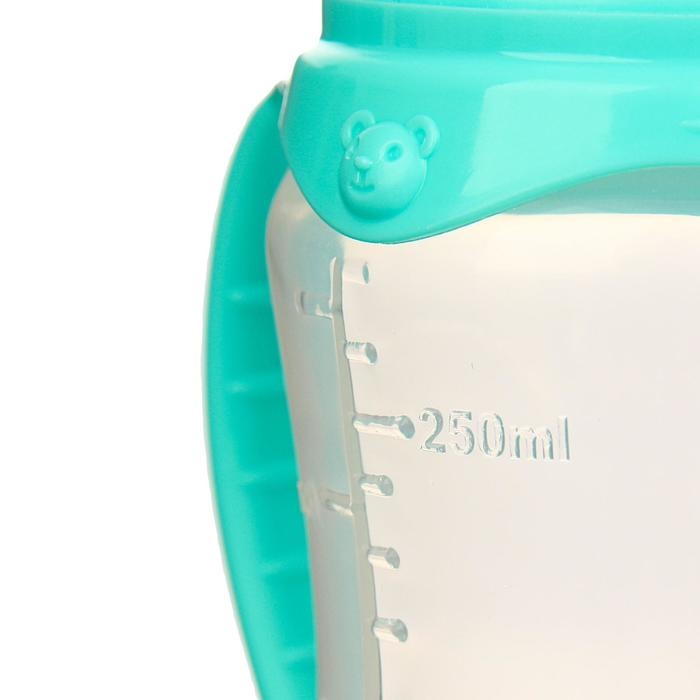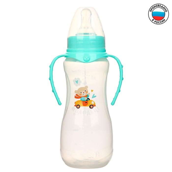 Бутылочка для кормления «Мишутка», классическое горло, приталенная, с ручками, 250 мл., от 0 мес., цвет бирюзовый