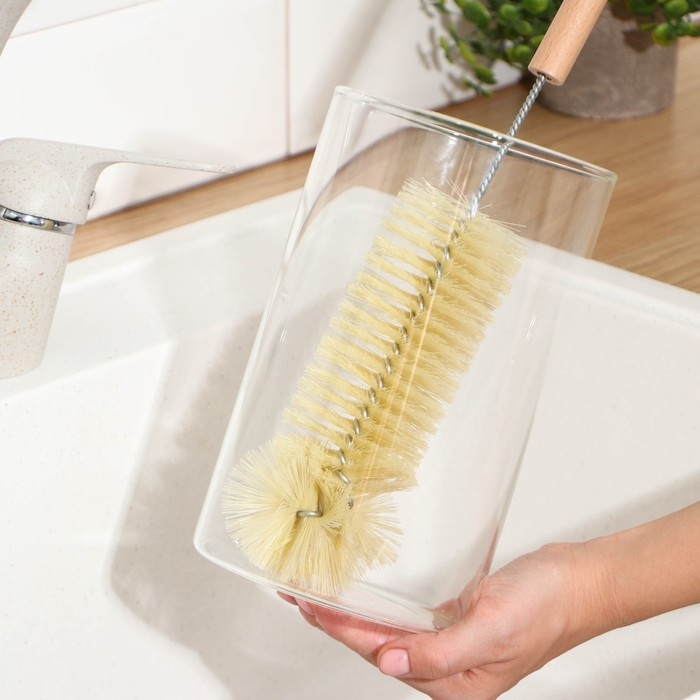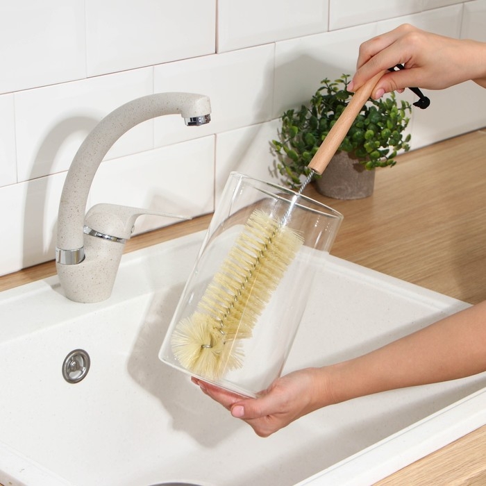 - Кухонный ёрш подходит для мытья посуды, детских бутылочек, сосок, банок, колб кальянов, ваз, кувшинов, чайников, бутылок, термосов, стаканов, графинов и прочей глубокой посуды с узким горлышком.