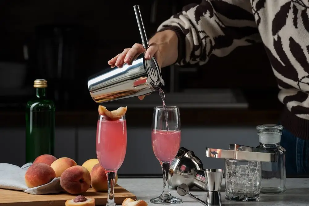 Отмерить нужное количество ингредиентов для напитка поможет мерный стаканчик — джиггер, барной ложкой удобно насыпать специи, а обратной ее стороной — разминать сочные кусочки фруктов. Щипцы пригодятся для добавления в шейкер кусочков льда или сахара, а ситечко-стрейнер поможет отделить коктейль от льда и мякоти фруктов, когда понадобится перелить уже готовый напиток из шейкера в стакан.В наборе: