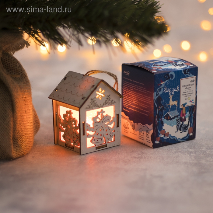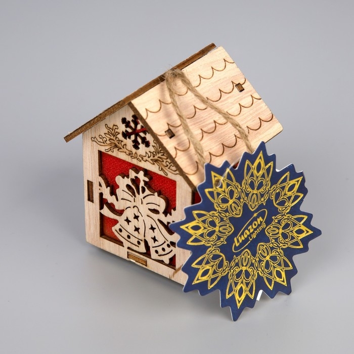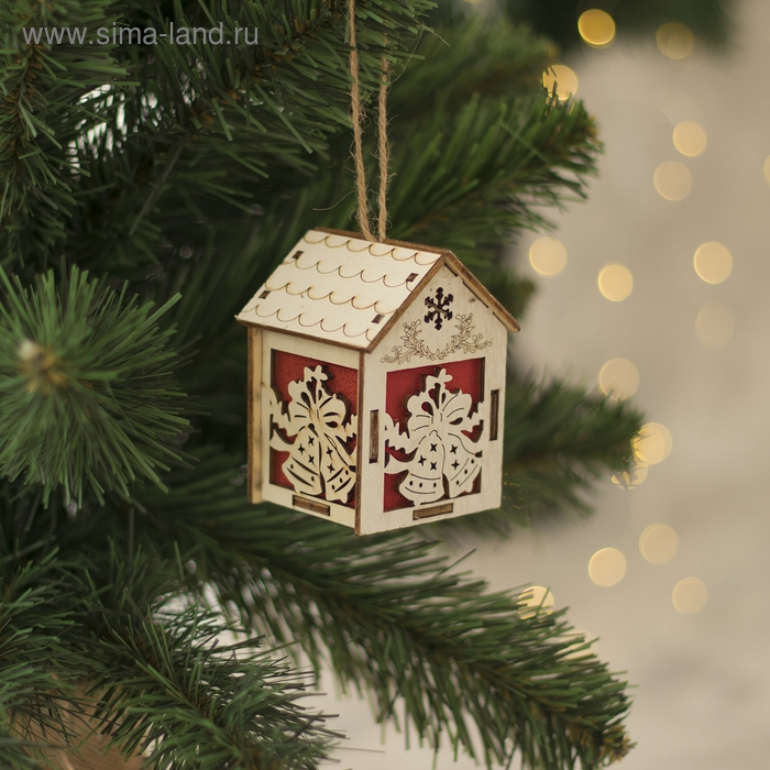 Ёлочная игрушка «Домик с колокольчиками», от батареек, свечение тёплое белое