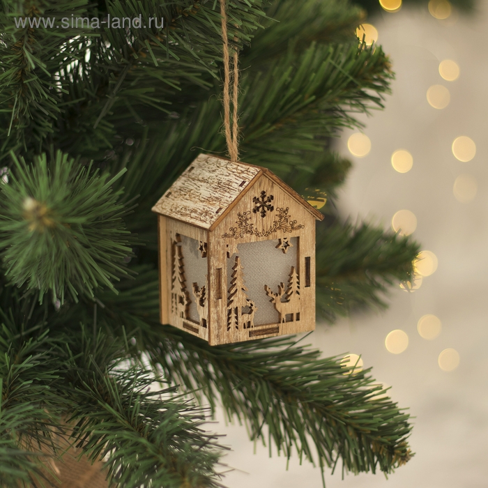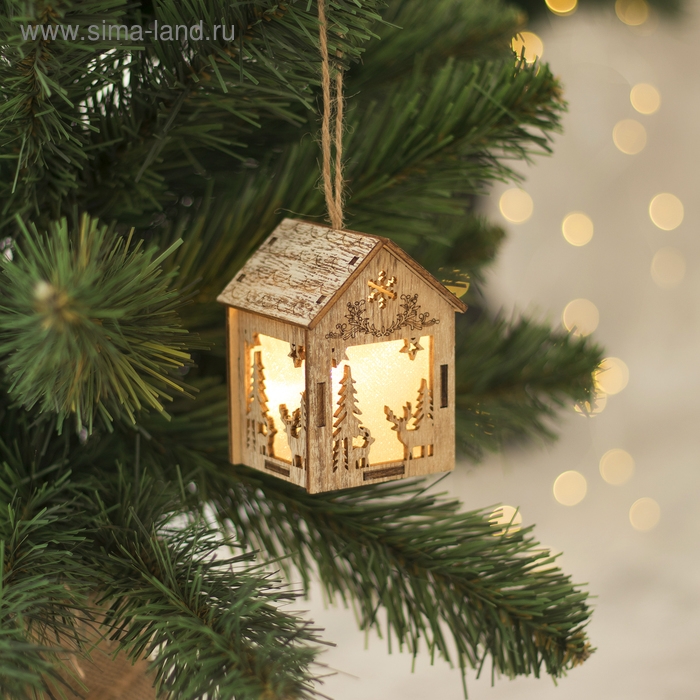 Ёлочная игрушка «Домик с оленем», от батареек, свечение тёплое белое