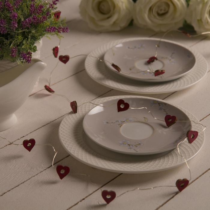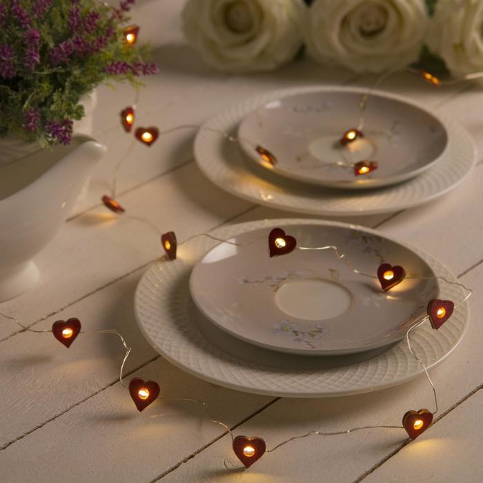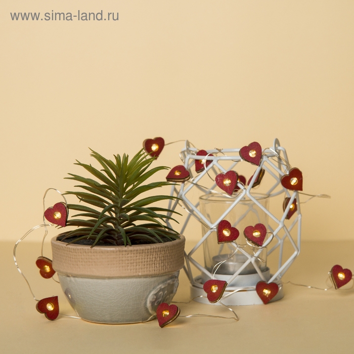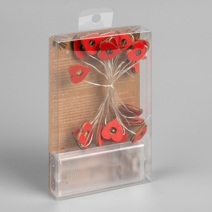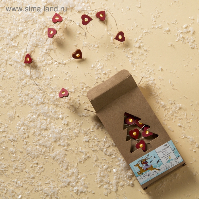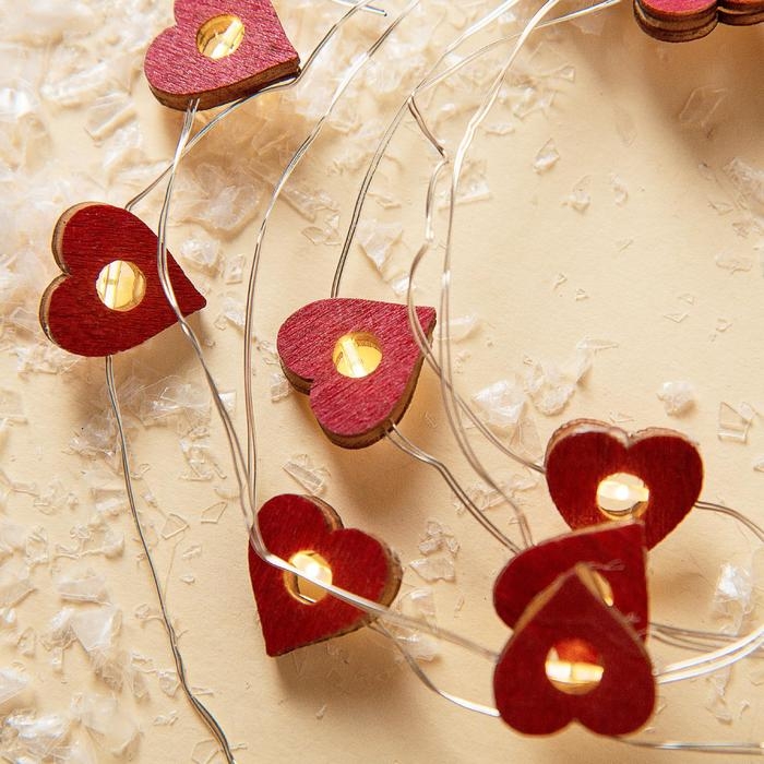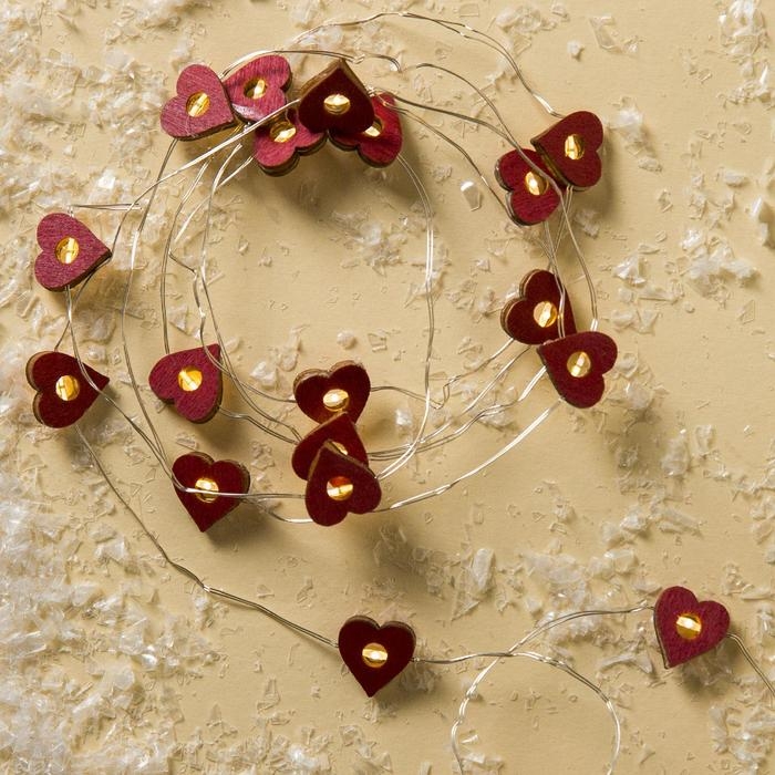 Гирлянда «Нить» 2 м роса с насадками «Сердце», IP20, серебристая нить, 20 LED, батарейки ААх2 (нет в комплекте), свечение тёплое белое