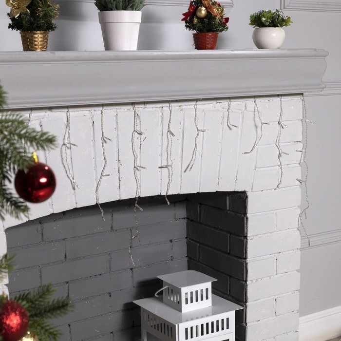 Гирлянда «Занавес» 2.5 × 0.65 м с насадками «Капли», IP20, прозрачная нить, 50 LED, свечение тёплое белое, 8 режимов, 220 В
