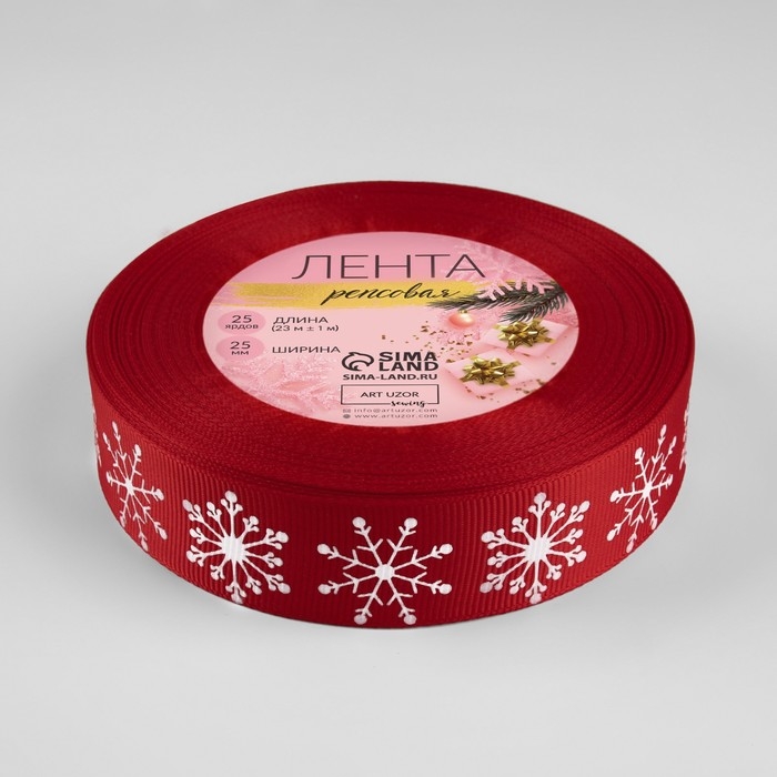 Новый год! Лента репсовая «Снежинки», 25 мм, 23 ± 1 м, цвет красный №1133