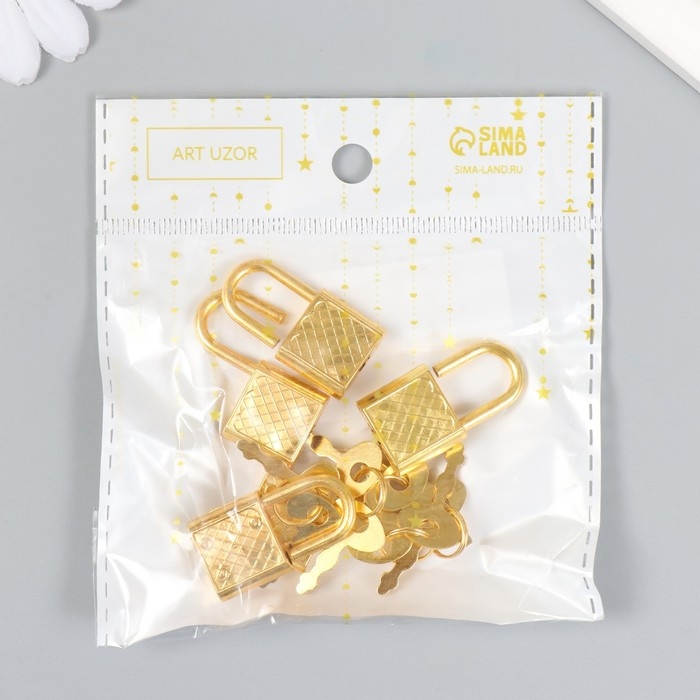 Замочек с ключиком для шкатулки металл набор 5 шт С286 золото 3,1х1,7 см