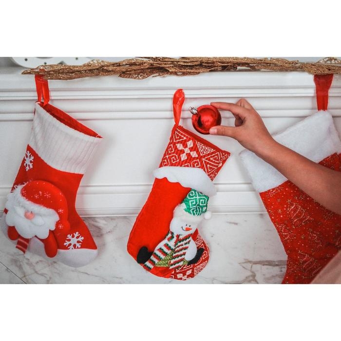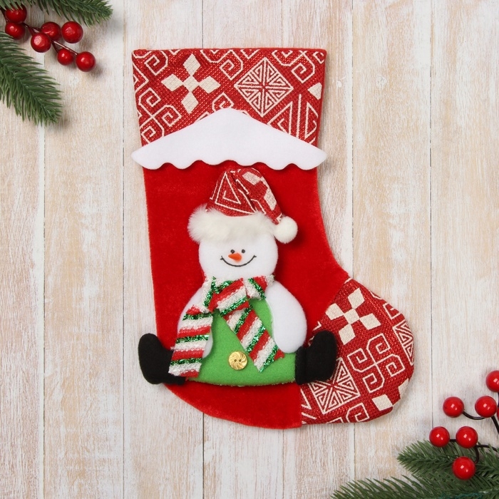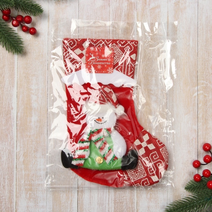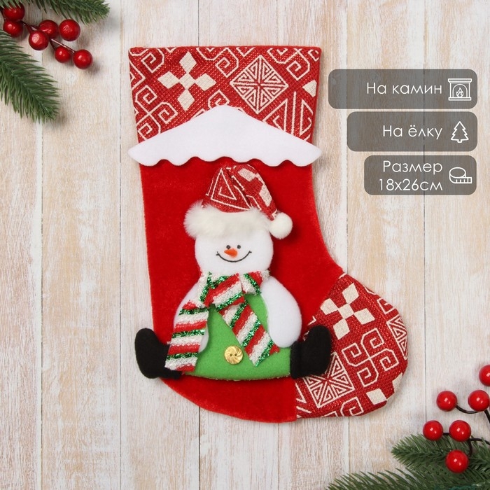 Носок для подарков "Снежный дом" Снеговик, 18,5х26 см, красный