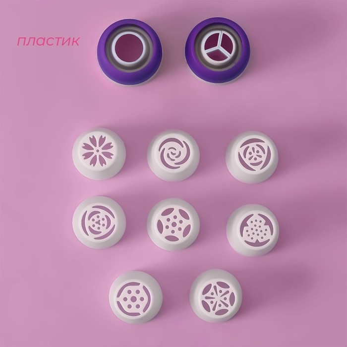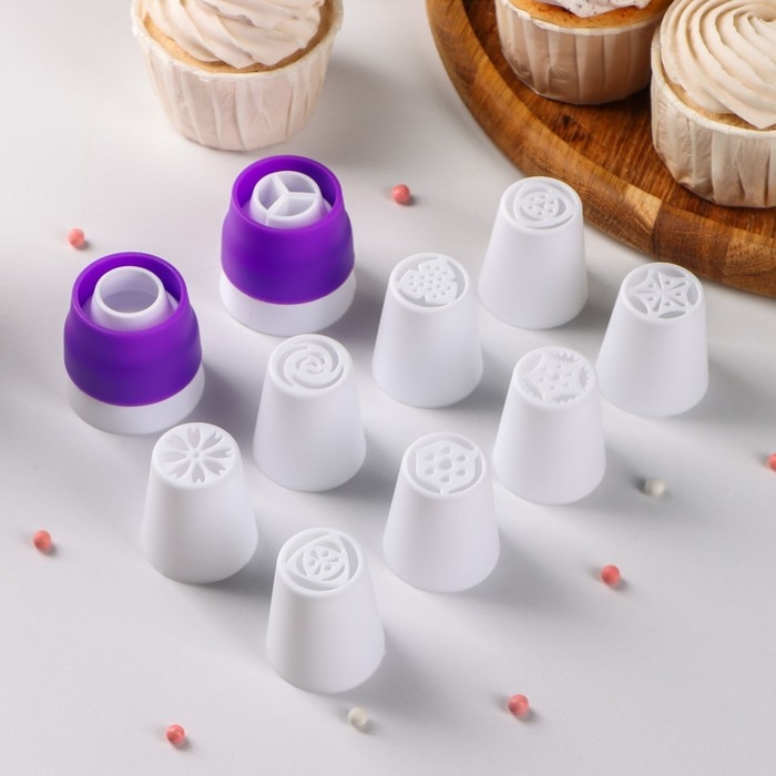 Набор насадок кондитерских Доляна, 8 насадок (d=3,5 см), 2 адаптера