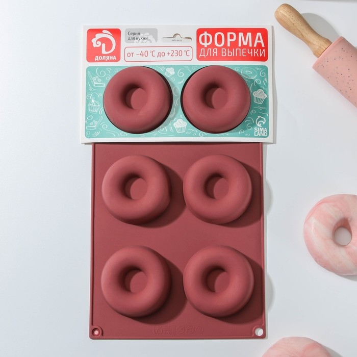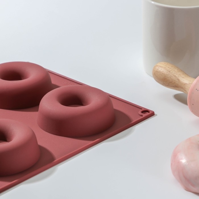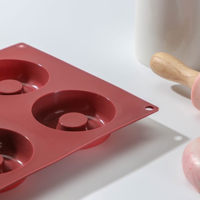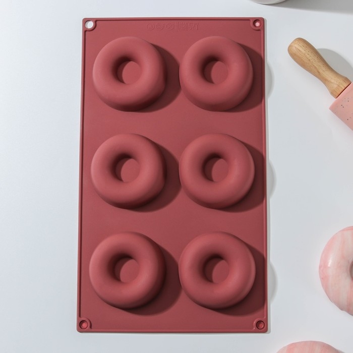 Форма для выпечки Доляна «Сладости.Пончики», силикон, 29×17 см, 6 ячеек, d=6,8 см, цвет МИКС
