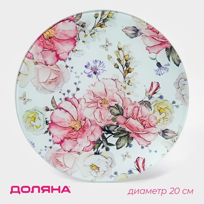 Доска разделочная стеклянная Доляна «Цветы», d=20 см