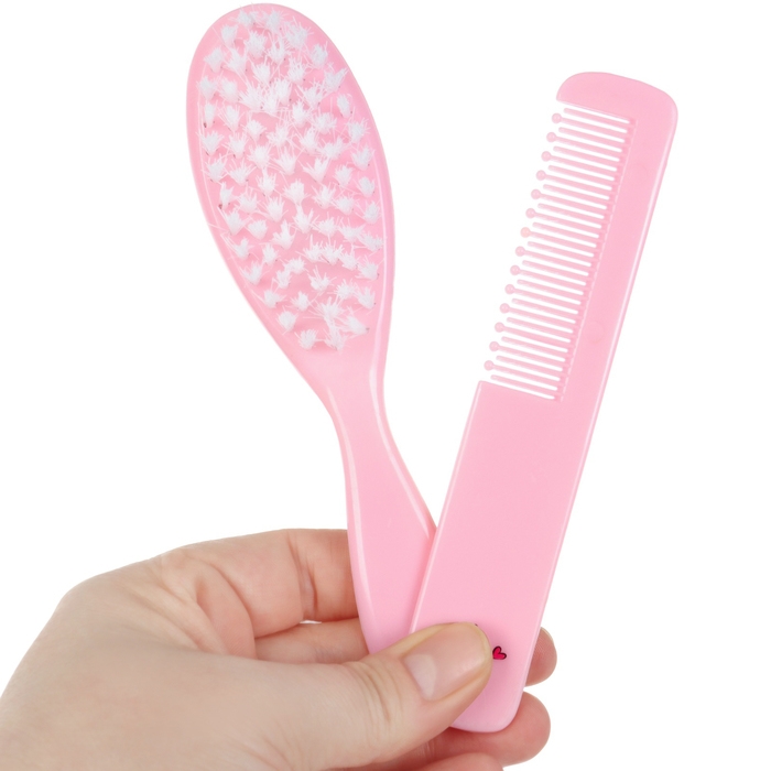 Расческа-щетка с мягкой щетиной и удобная расческа с закругленными зубчиками предназначены для малышей с первых дней жизни.