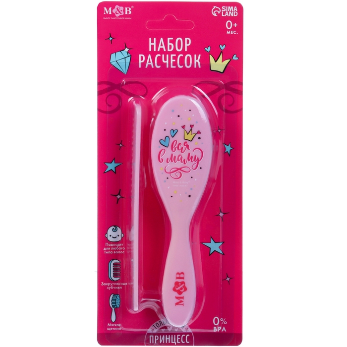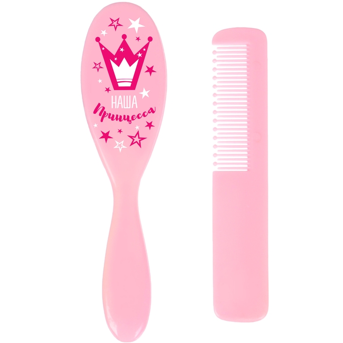 Расчёска детская + массажная щётка для волос «Наша принцесса», от 0 мес., рисунок МИКС