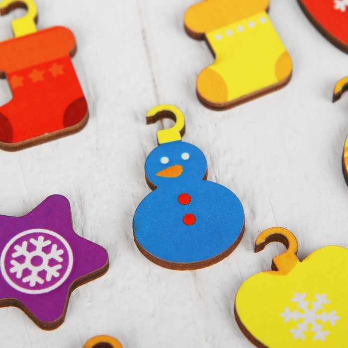 Поместите штырьки в специальные отверстия и наряжайте ёлку вместе с малышом. Занятия с такой игрушкой способствуют развитию мелкой моторики, а значит и мышления.