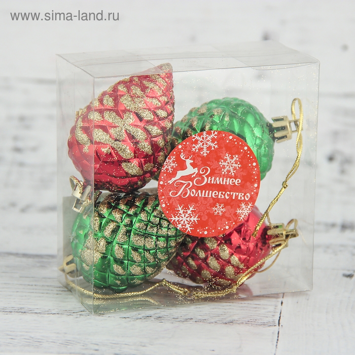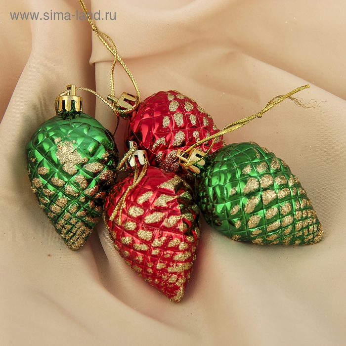 Украшение ёлочное "Шишка с золотинкой" (набор 4 шт) 5х4 см, красный зелёный