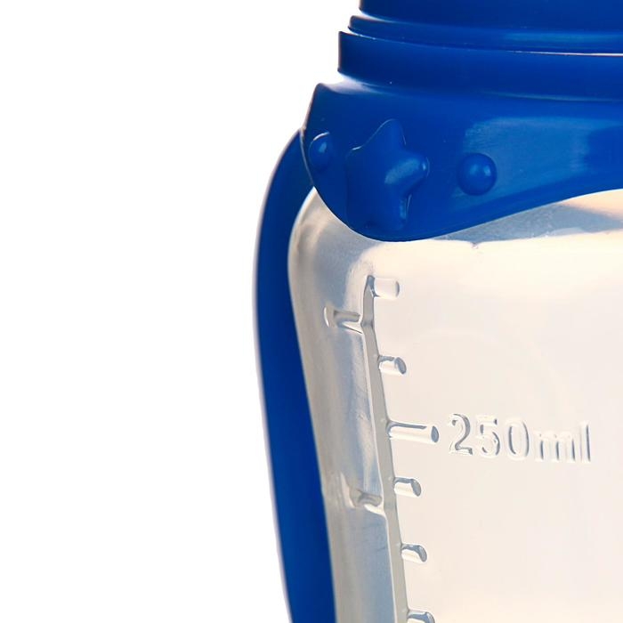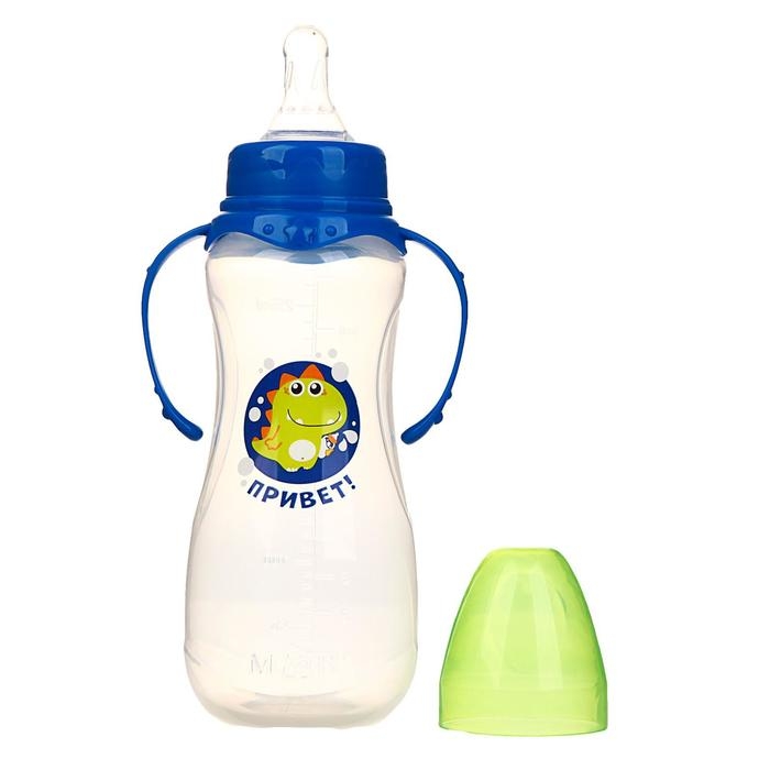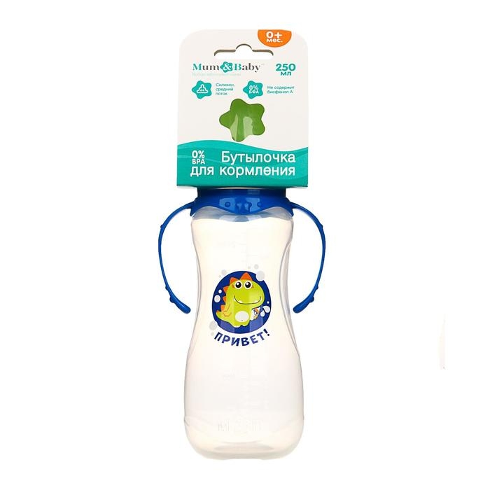 Бутылочка для кормления «Динозаврик Рикки» детская приталенная, с ручками, 250 мл, от 0 мес., цвет синий