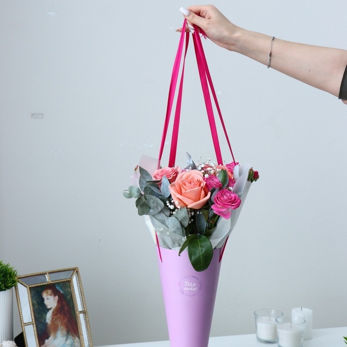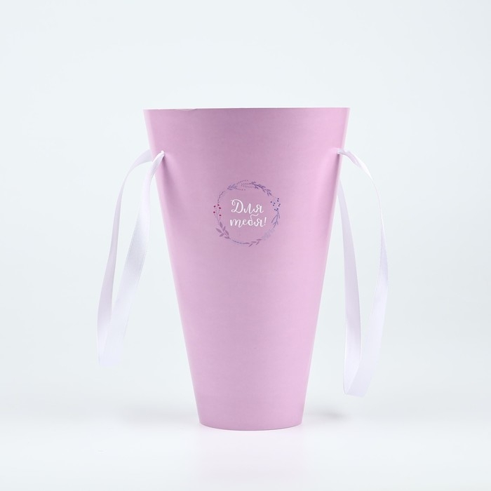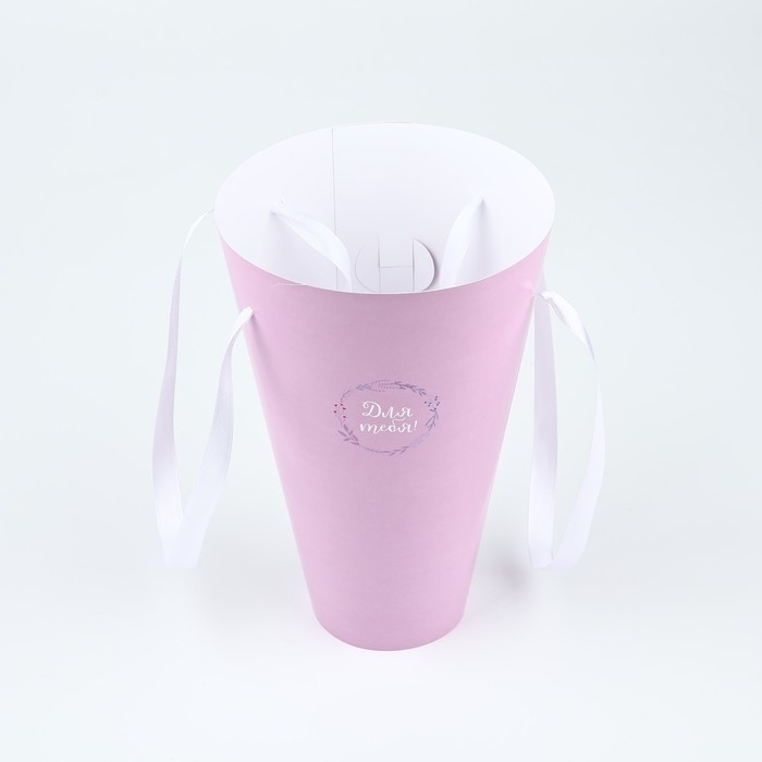 Пакет для цветов конусный круглый складной на лентах «Для тебя», 15 х 23.3 х 7.5 см
