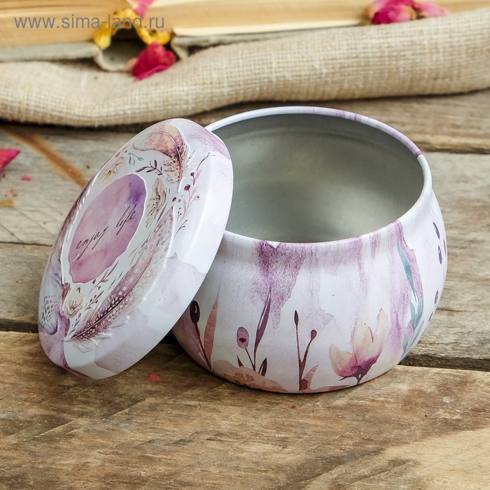 Шкатулка металл круг "Пёрышки" 5х7х7 см