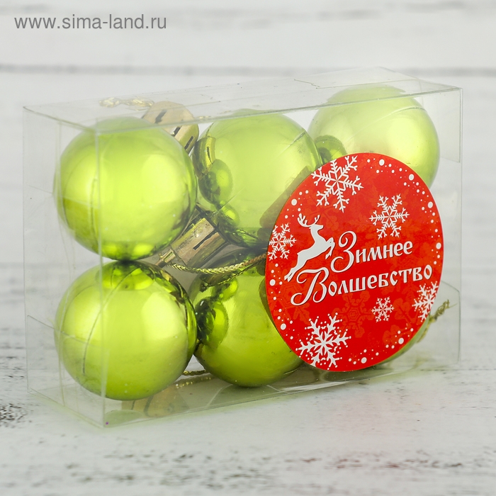 Набор шаров пластик d-3 см, 6 шт "Глянец" зелёный