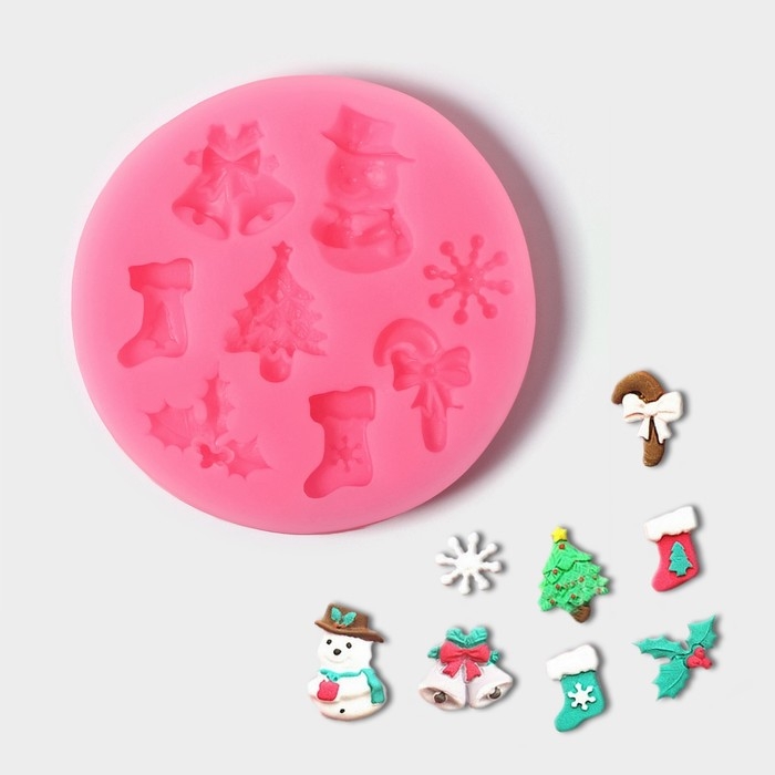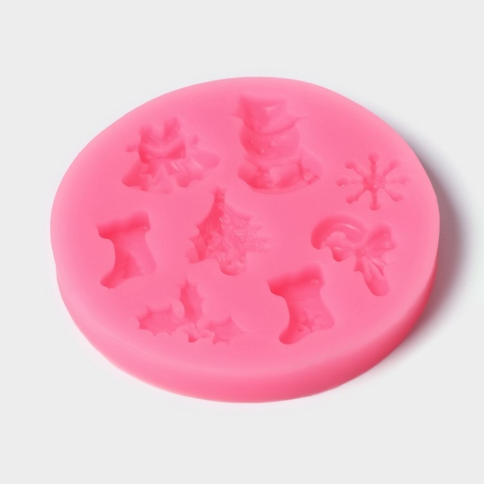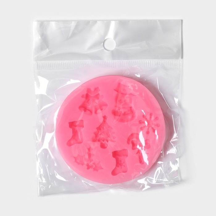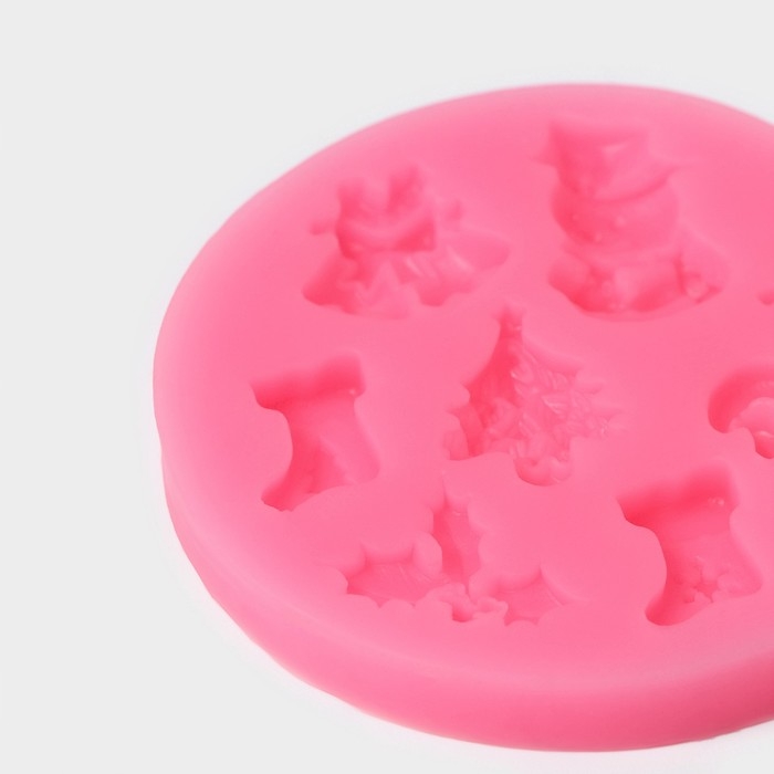 Молд новогодний «Новогодняя атрибутика», силикон, 6,5×6,5 см, цвет розовый