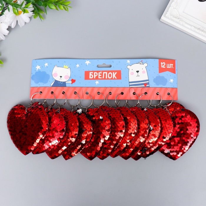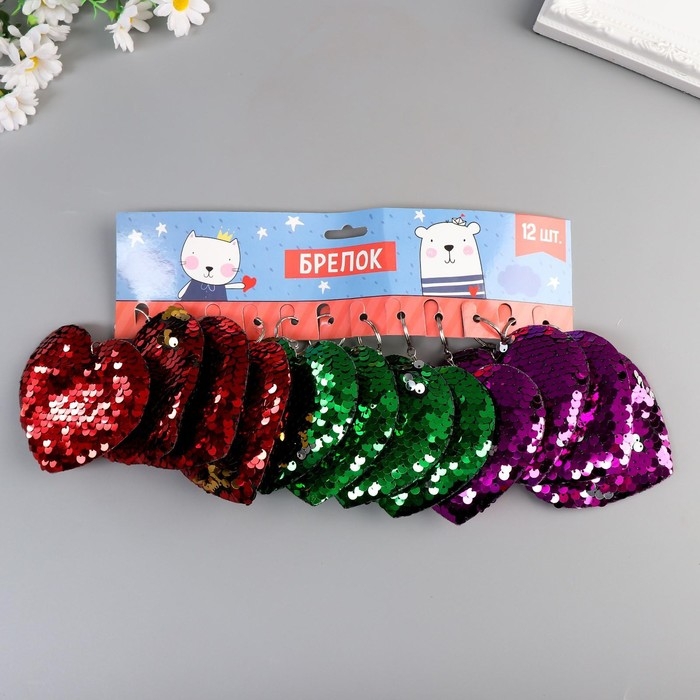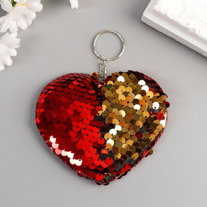 Брелок текстиль пайетки "Сердечко" МИКС 9х8 см