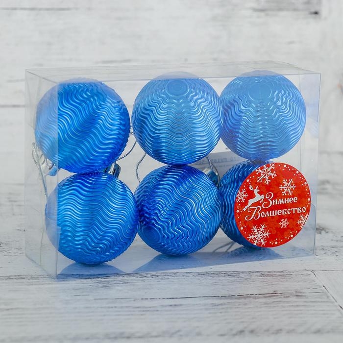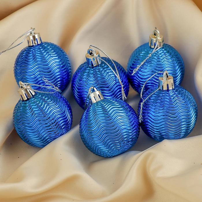Набор шаров пластик d-5 см, 6 шт "Волна" синий