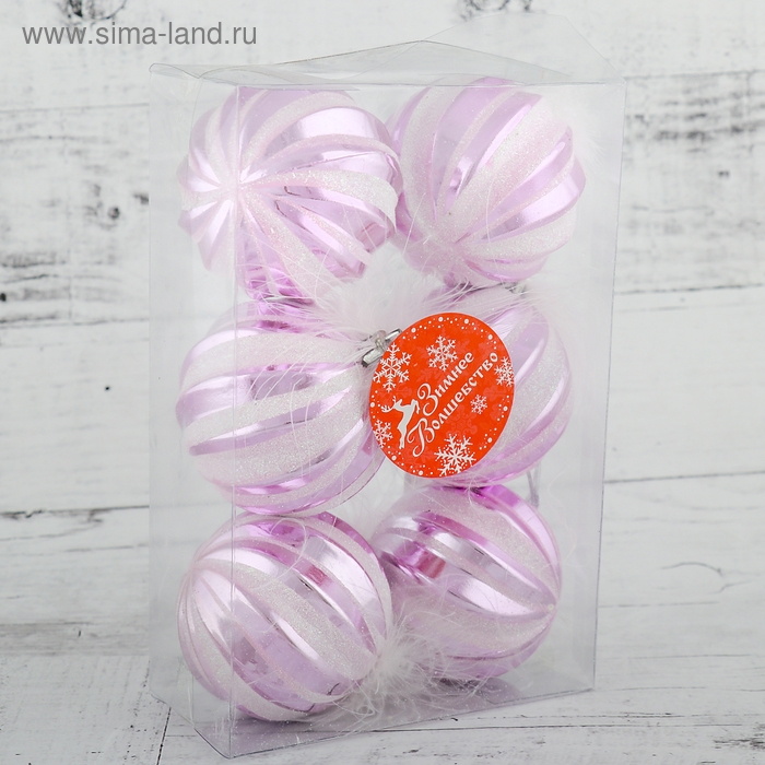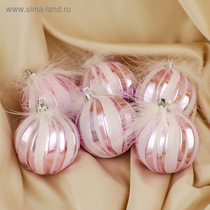 Набор шаров пластик d-6 см, 6 шт "Пушистый зефир" розово-белый