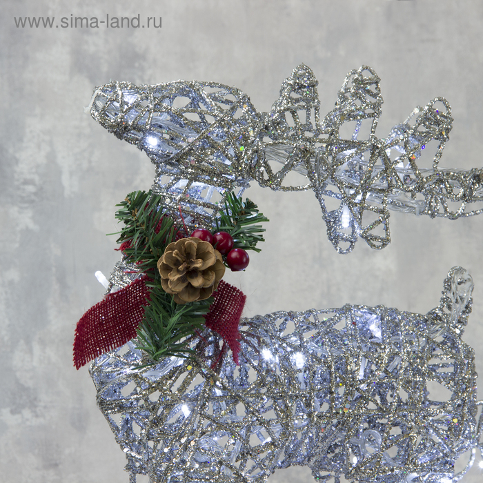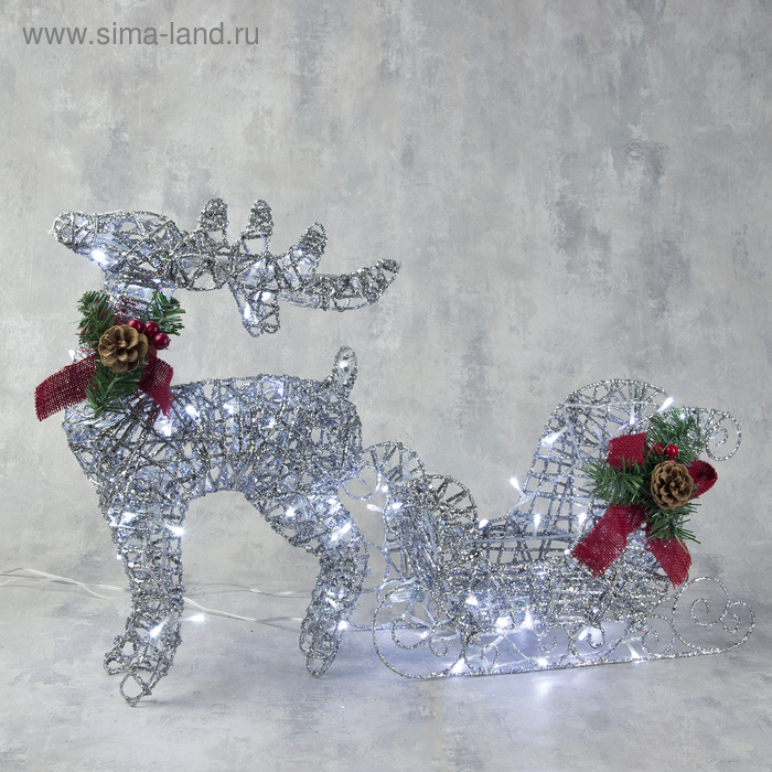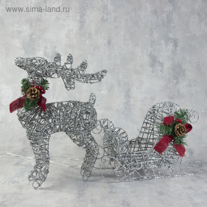 Светодиодная фигура «Олень с санями серебристый», олень: 40 × 50 × 16 см, сани: 40 × 25 × 10 см, металл, 220 В, свечение белое