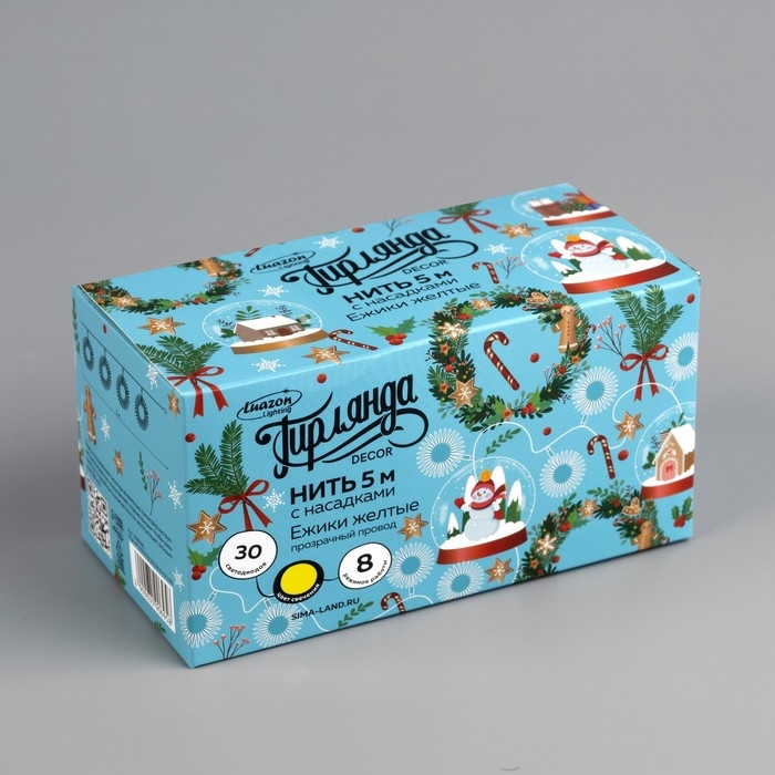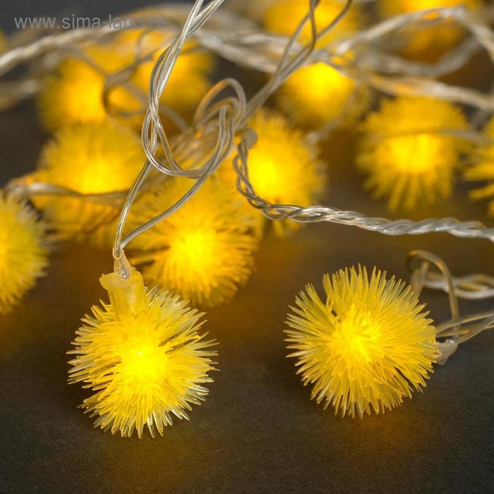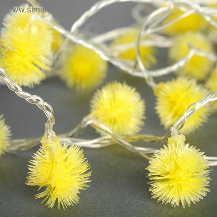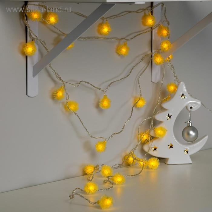 Гирлянда «Нить» 5 м с насадками «Ёжики жёлтые», IP20, прозрачная нить, 30 LED, свечение жёлтое, 8 режимов, 220 В