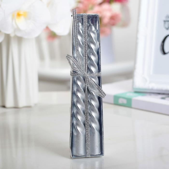 Набор свечей витых, 1,5х 15 см, 2 штуки, серебряный металлик