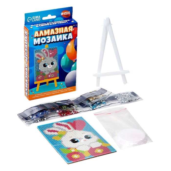 Алмазная мозаика с частичным заполнением на подставке для детей «Зайка», 10 х 15 см