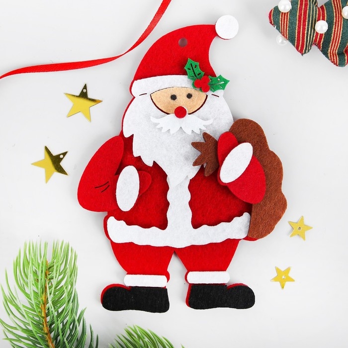 Набор для творчества - создай ёлочное украшение из фетра «Дед мороз с мешком подарков»