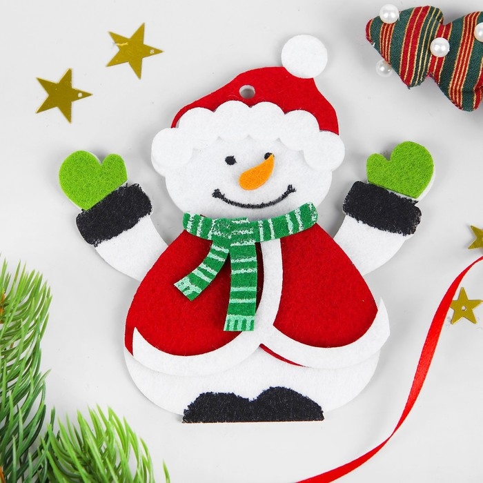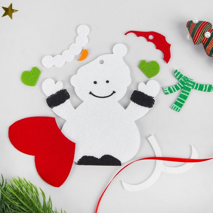 Набор для творчества - создай ёлочное украшение из фетра «Снеговик в шапочке»
