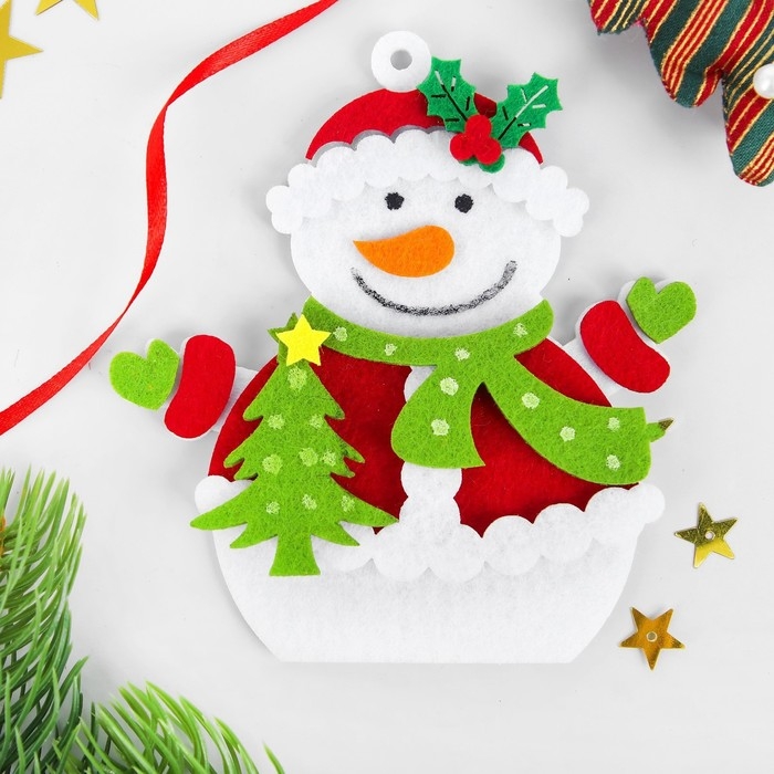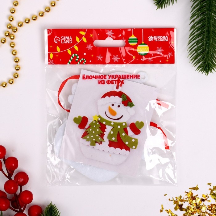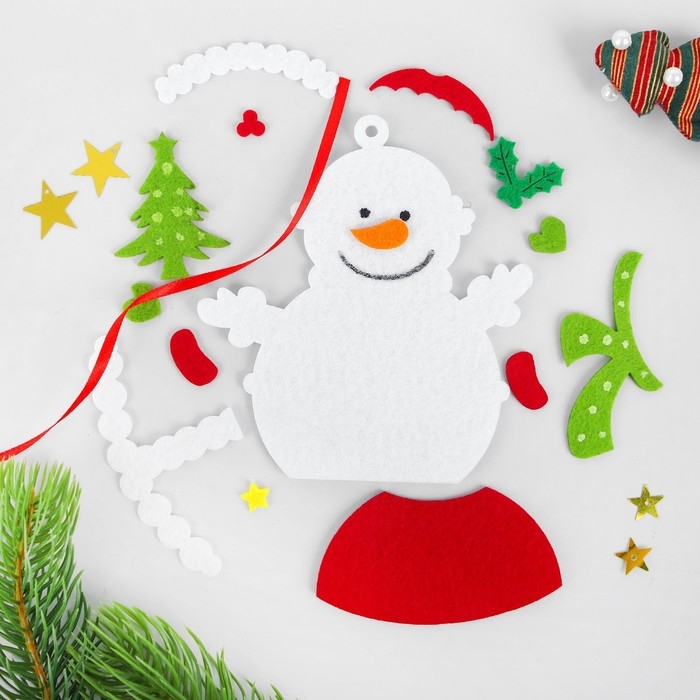 Набор для творчества - создай ёлочное украшение из фетра «Снеговик с ёлочкой»