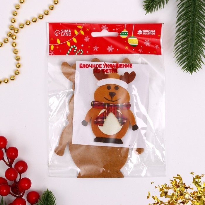 Набор для творчества - создай ёлочное украшение из фетра «Олень в шарфике»