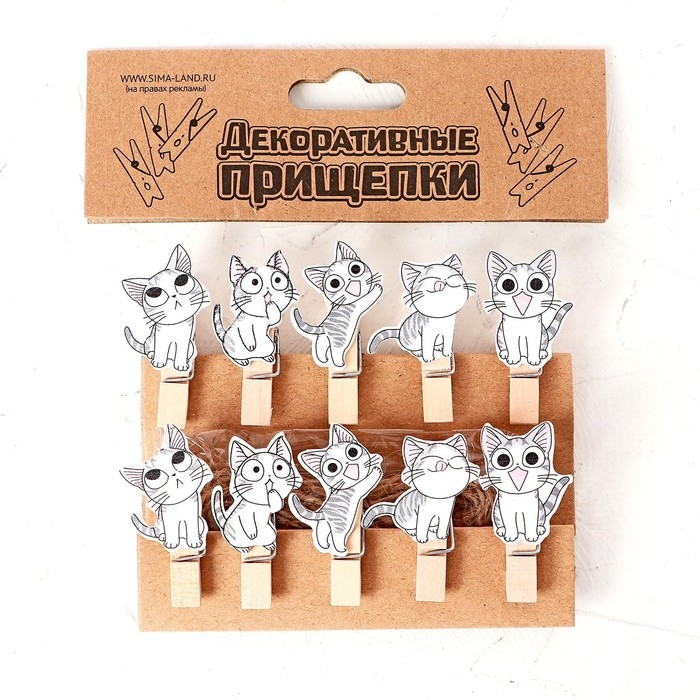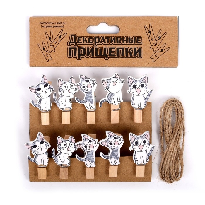 Набор для фото и декора «Котята», в наборе прищепки 10 шт., верёвка 100 см — это не только полезные приспособления в хозяйстве, но также элементы оформления интерьера, цветочных композиций, декорирования подарков, открыток и многого другого.