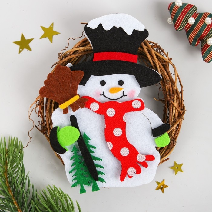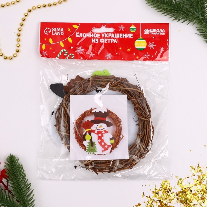 Набор для творчества - создай новогоднее украшение «Венок - снеговик с метлой»