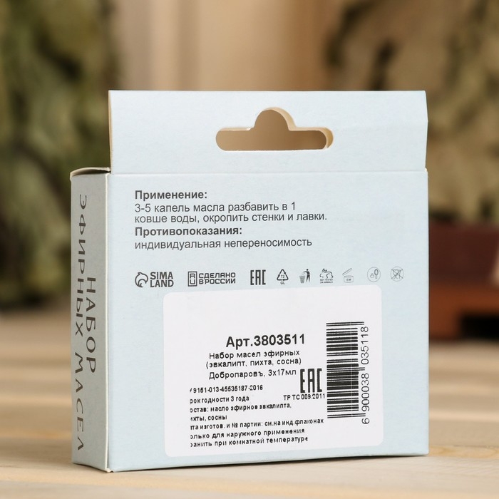 Набор эфирных масел эвкалипт, пихта, сосна, "Добропаровъ", 3 шт по 17 мл