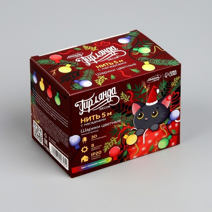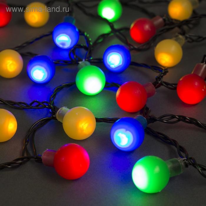 Гирлянда «Нить» 5 м с насадками «Шарики цветные», IP20, тёмная нить, 30 LED, свечение мульти, 8 режимов, 220 В