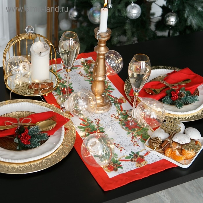 Новый год. Дорожка на стол "Этель" Рождественский балл 30х70 +/-3 см, 100% хлопок, саржа 190 гр/м2
